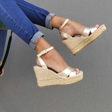 Klassischer Espadrille-Keilsandal in Gold (vegan)