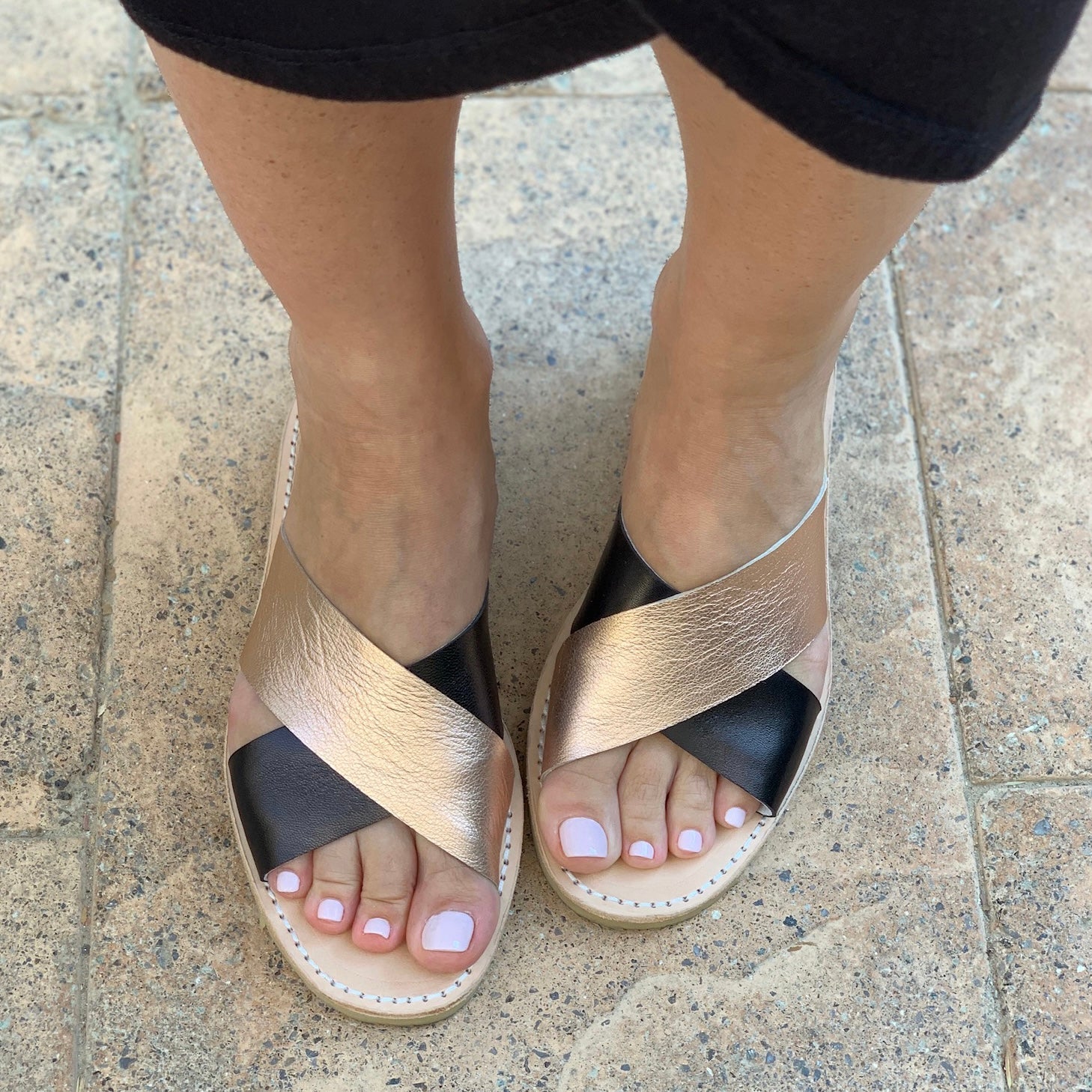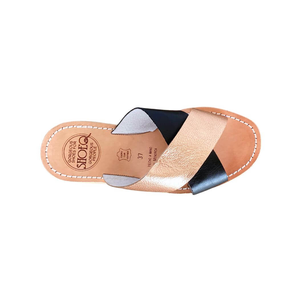 - Handgefertigte Sandale aus Vollleder mit zwei kontrastierenden Riemen
