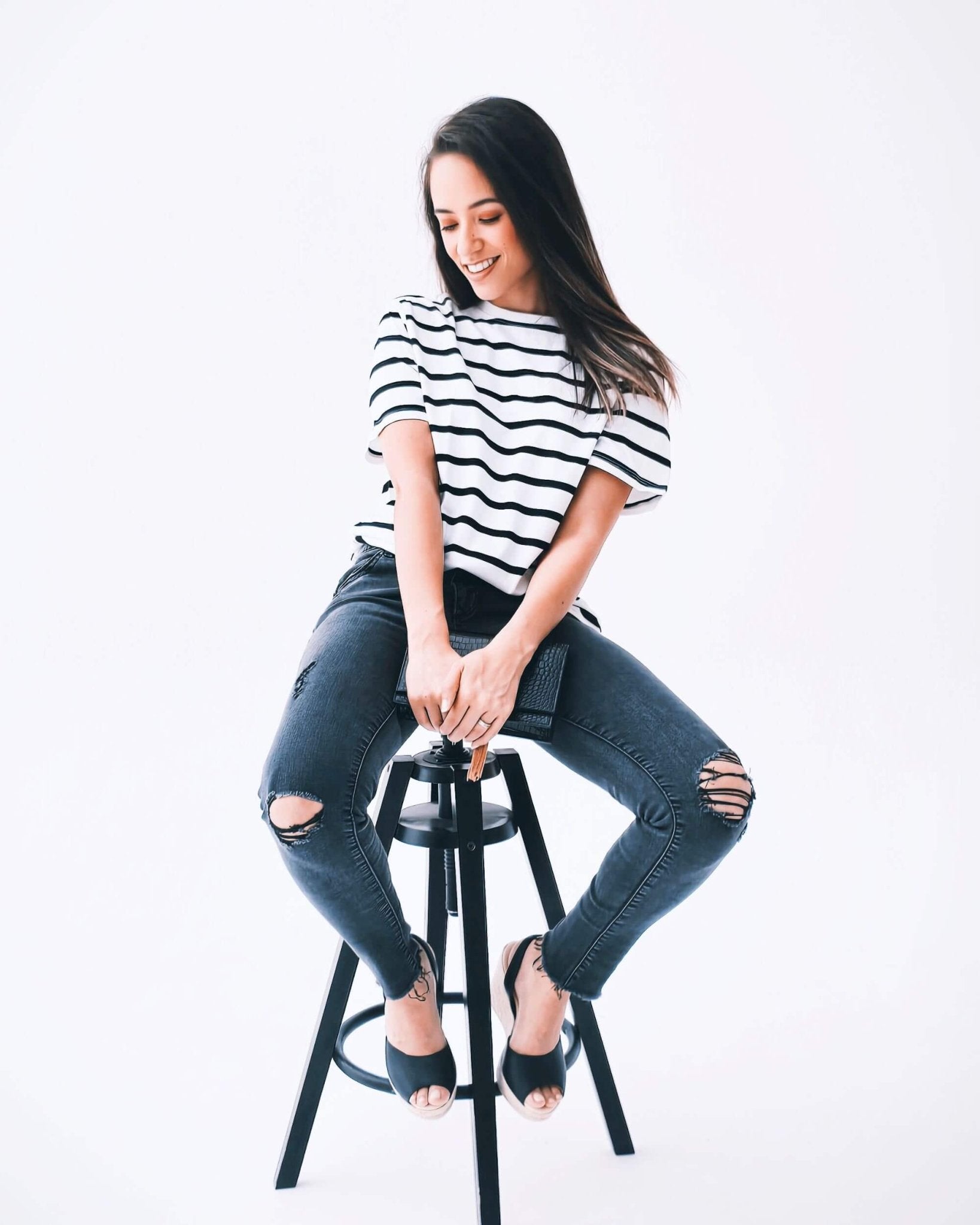 Auffällig, elegant und überraschend bequem – Ihre perfekte schwarze Plateau-Keilabsatz-Sandale.